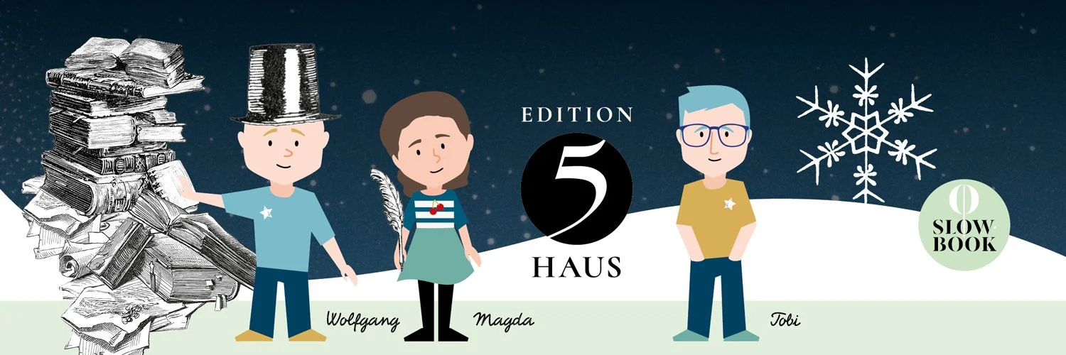 In der Edition 5Haus wird das Buch als Erlebniswelt verstanden und weitergedacht. Kunstvolle Illustrationen und Texte sind Türöffner und Wegbegleiter. Sie fordern auf, entführen, bewegen und berühren – und lösen Altersgrenzen auf.