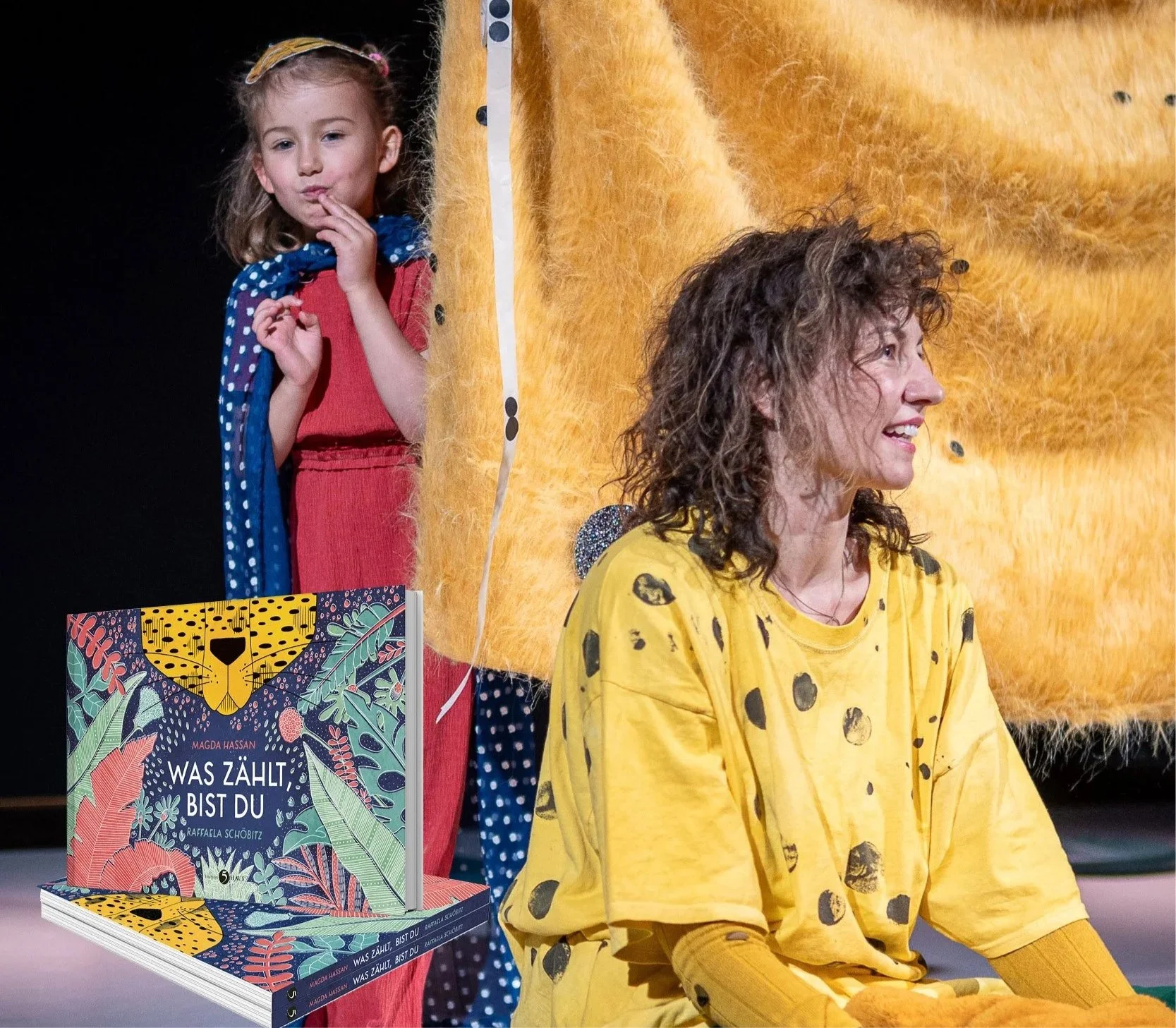 Ein Kind, eine Tänzerin und ein Musiker begegnen auf einer Bühne einem Gepard. Spielerisch, musikalisch, in poetischen Bildern und Sprachen und immer mit Unterstützung der jungen Zuschauer:innen erwecken sie Punkt für Punkt das einfühlsame und kunstvoll illustrierte Bilderbuch „Was zählt, bist du“ von Magda Hassan und Raffaela Schöbitz zum Leben.